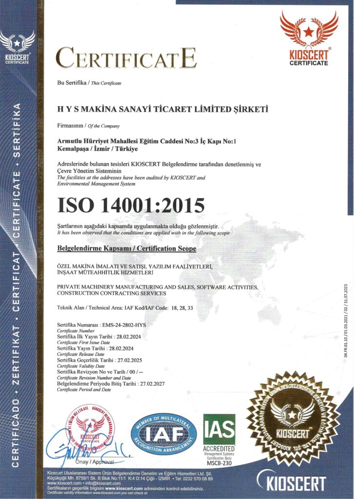 Fabrikamızda tertip-düzen ve iş sağlığı güvenliği uygulamaları ile ürün ve çalışan güvenliğini en üst seviyeye çıkarmayı hedefliyor; aynı zamanda maliyetleri düşürerek rekabet gücümüzü arttırıyoruz. HYS, her geçen gün daha iyiye ulaşarak, sektördeki lider konumunu güçlendirmeyi ve çalışanlarıyla birlikte başarılı bir geleceğe doğru ilerlemeyi amaçlamaktadır.