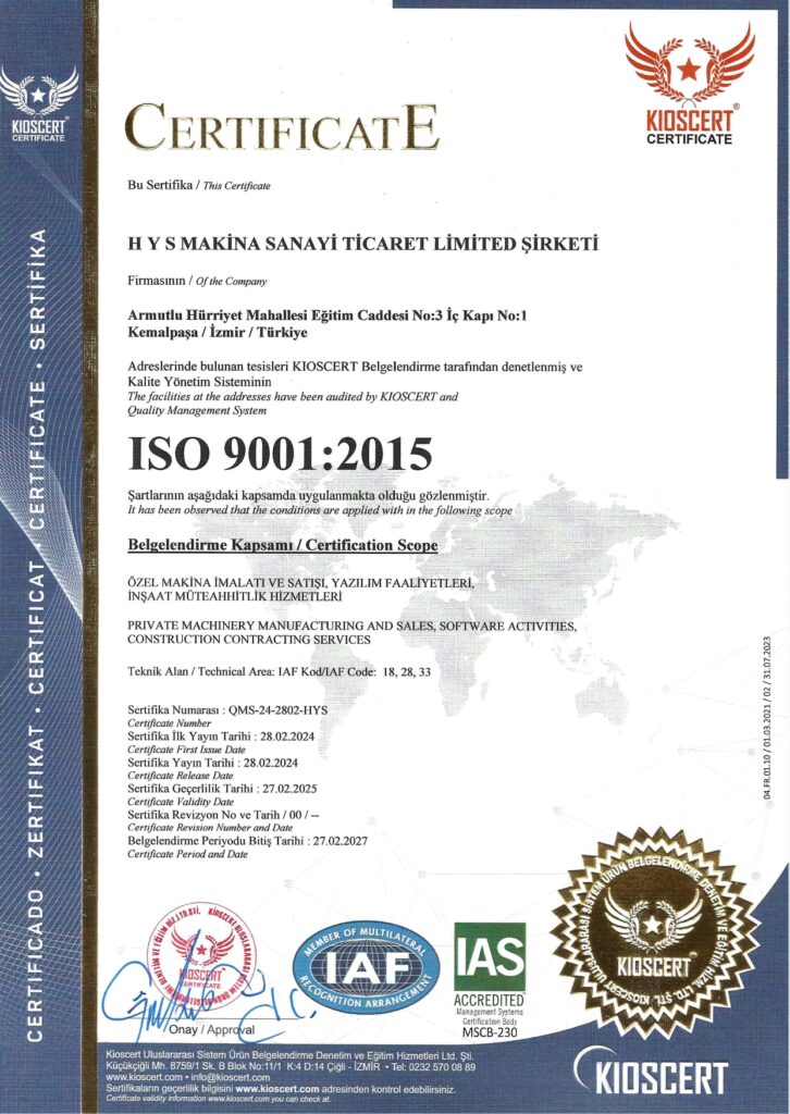 HYS, makine kaynaklı imalat ve kumlama işlemleriyle sektördeki yerini sağlamlaştırmış, dinamik ve genç yapısıyla geleceğe odaklanmış bir kaynakçılık firmasıdır. Yenilikçi yaklaşımı ve geniş üretim yelpazesiyle kaynaklı imalat alanında güçlü bir vizyona sahip olan firmamız, ihracat kapasitesini arttırarak global pazarda da kendini kanıtlamayı hedeflemektedir.